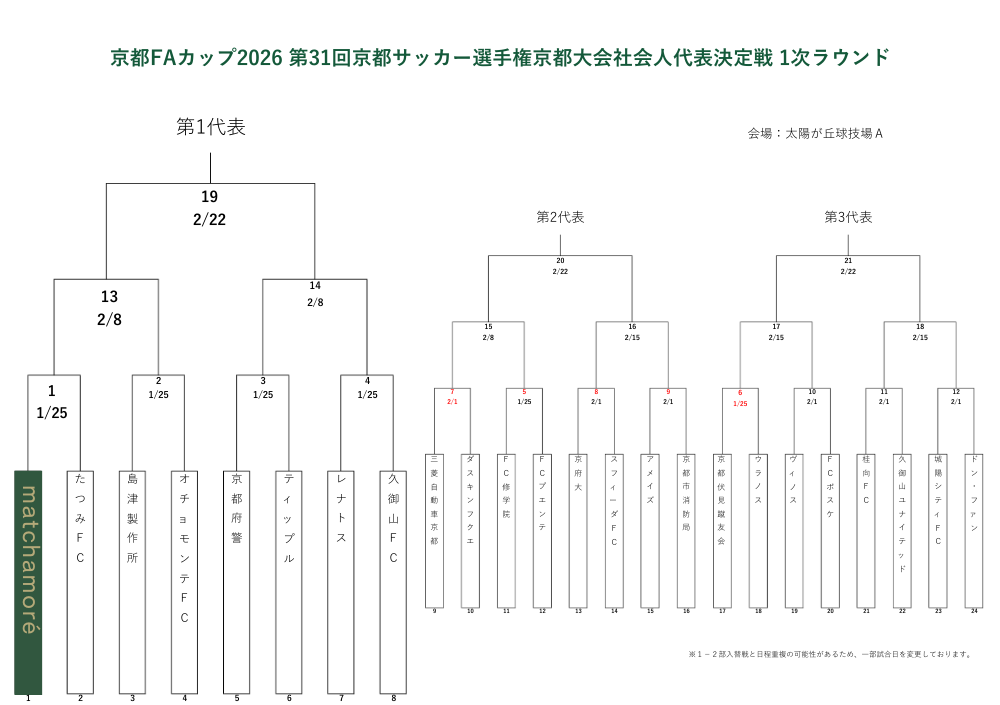 マッチャモーレ京都山城は、京都FAカップ2026(第31回 京都サッカー選手権大会)社会人代表決定戦に出場いたします。